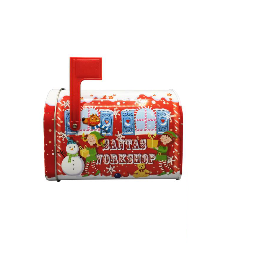 Latinha caixa de correio com tampa frontal e bandeirinha que mexe. Prenda ideal para oferecer recheada com doces/chocolates.
